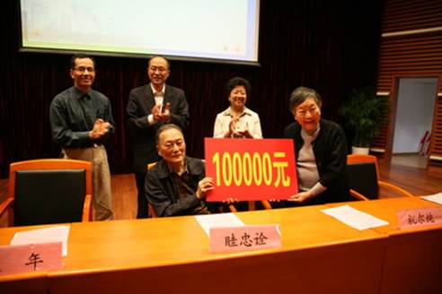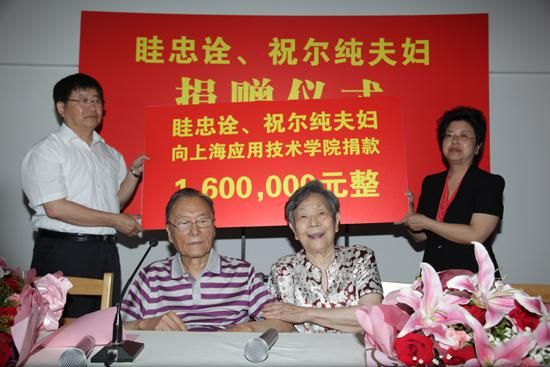 2011年,二老夫妇做出了一个重要的决定,他们卖掉唯一的一套住房,除预留生活所需费用外,在2013年把卖房所得款中的160万无偿捐赠给学校,捐赠款项用于支持学校“先贤语迹”文化景观建设。